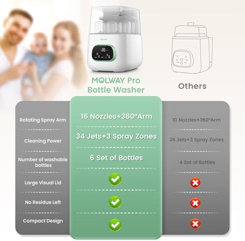 The MOLWAY 4-in-1 Baby Bottle Washer combines washing, steam sterilizing, drying, and storage functions, liberating your hands from the tedious task of manual washing. Enjoy more free time while ensuring your baby’s feeding essentials are impeccably clean. This appliance is a must-have companion for busy parents.